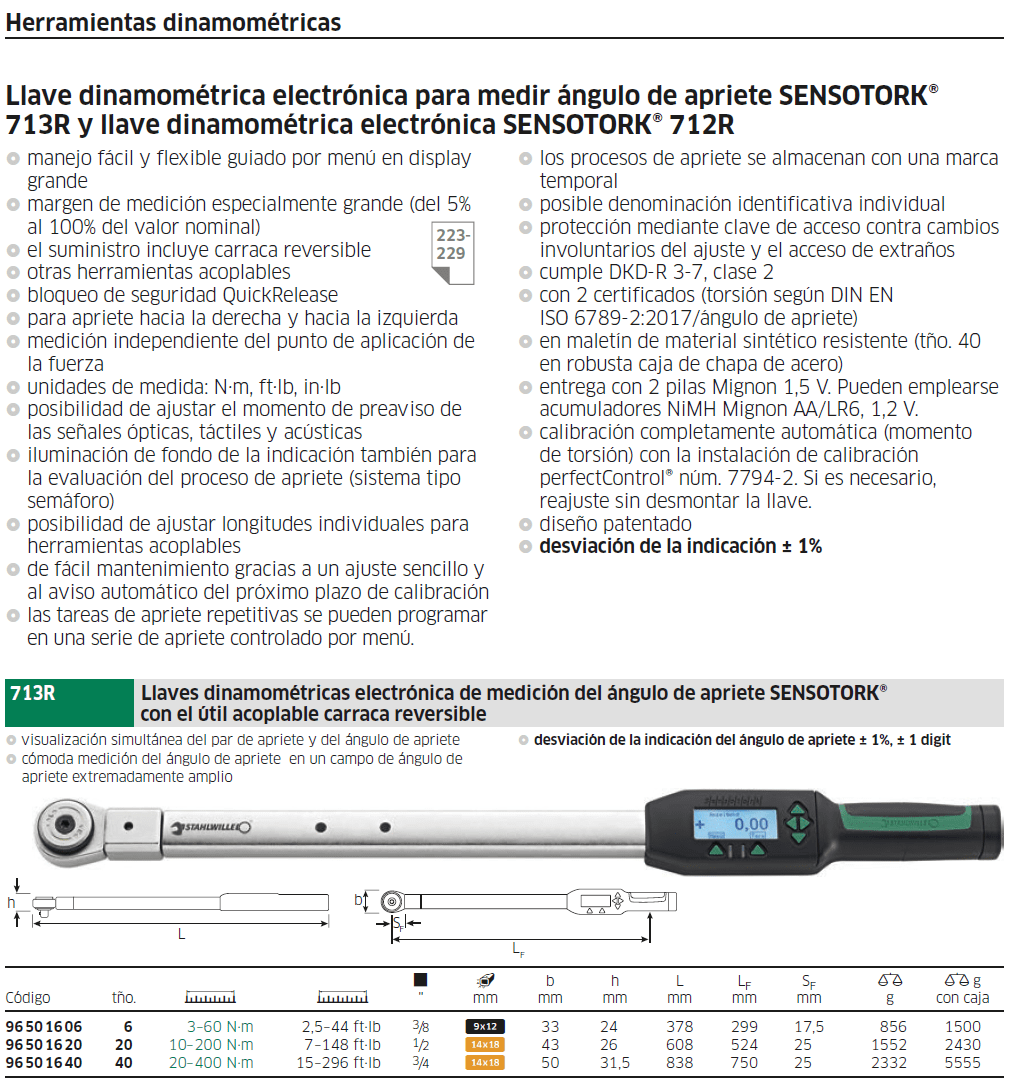 La reina del catálogo de STAHLWILLE, con una desviación de la indicación de tan solo ± 1 %, es la SENSOTORK® 713R.