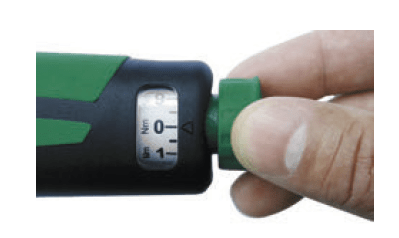 Ajuste rápido desde el exterior, sin necesidad de desmontar la llave dinamométrica, con ayuda de os puntos de ajuste para los valores superiores e inferiores.