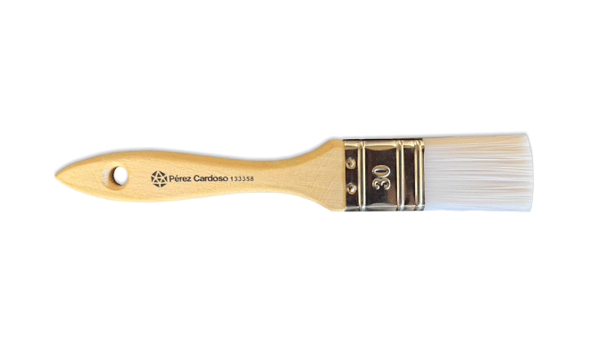 Brocha de nylon 30 mm con mango de madera y filamentos 0,30 mm. Precisión, suavidad y durabilidad para pintura, barniz y detalles finos.
