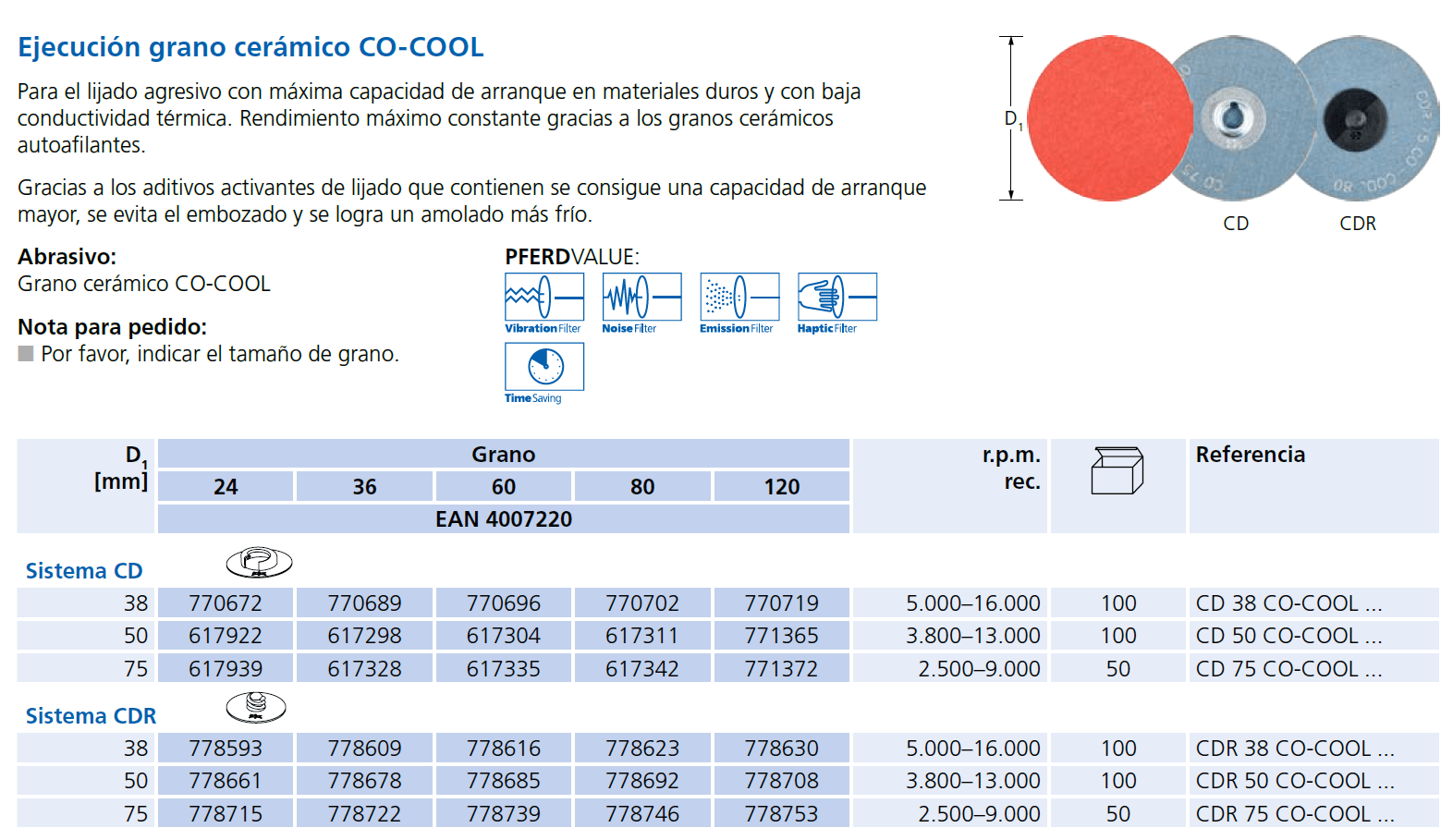 • Rendimiento máximo constante gracias a los granos cerámicos autoafilantes.