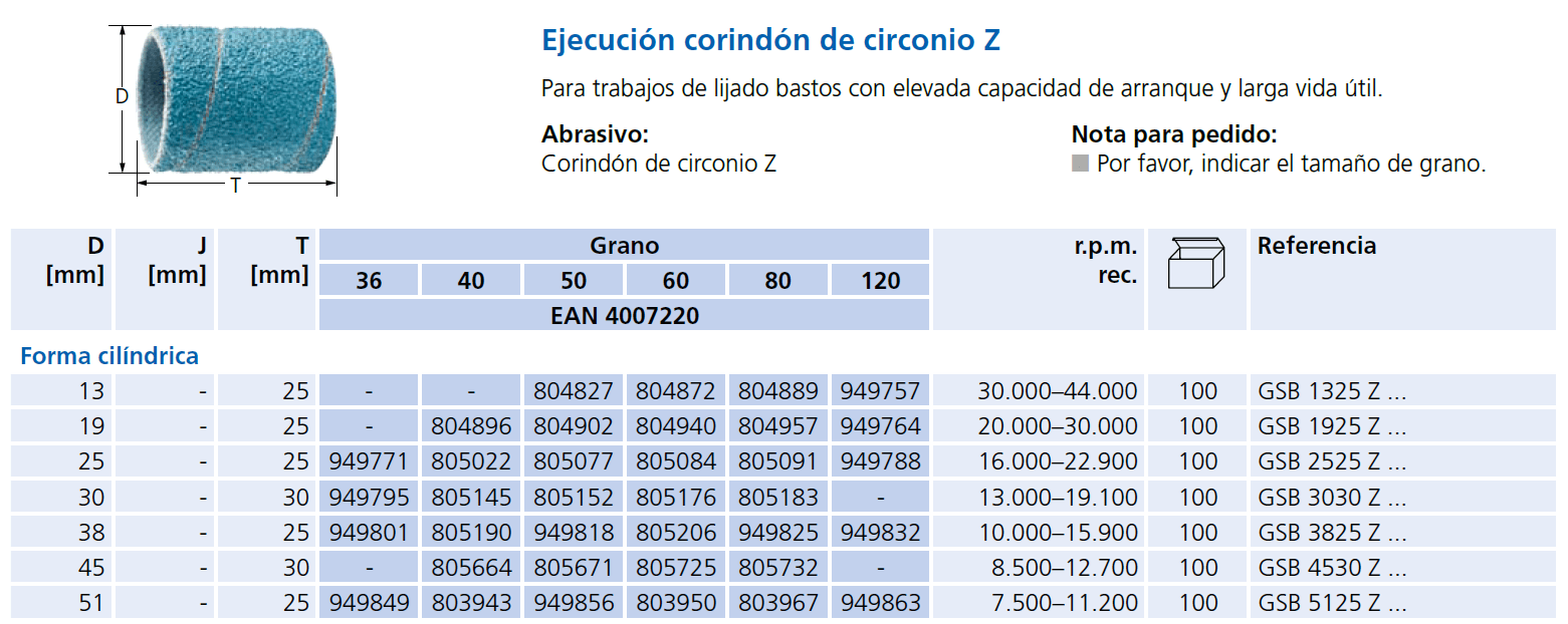 Manguito lijador GSB Corindón de Circonio Z