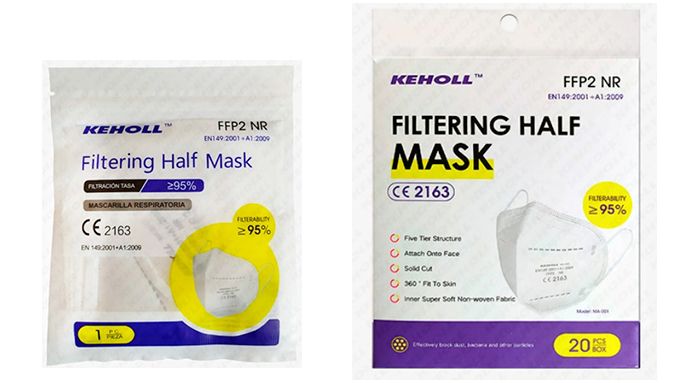 La mascarilla Keholl FFP2 NR Blanca disponde de certificación de Calidad CE 2163