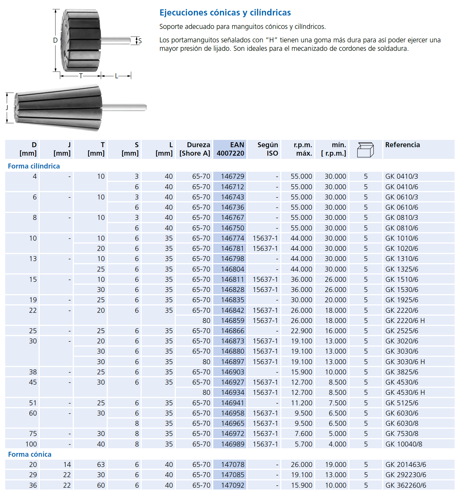 Los portamanguitos señalados con “H” tienen una goma más dura para así poder ejercer una mayor presión de lijado. Son ideales para el mecanizado de cordones de soldadura.